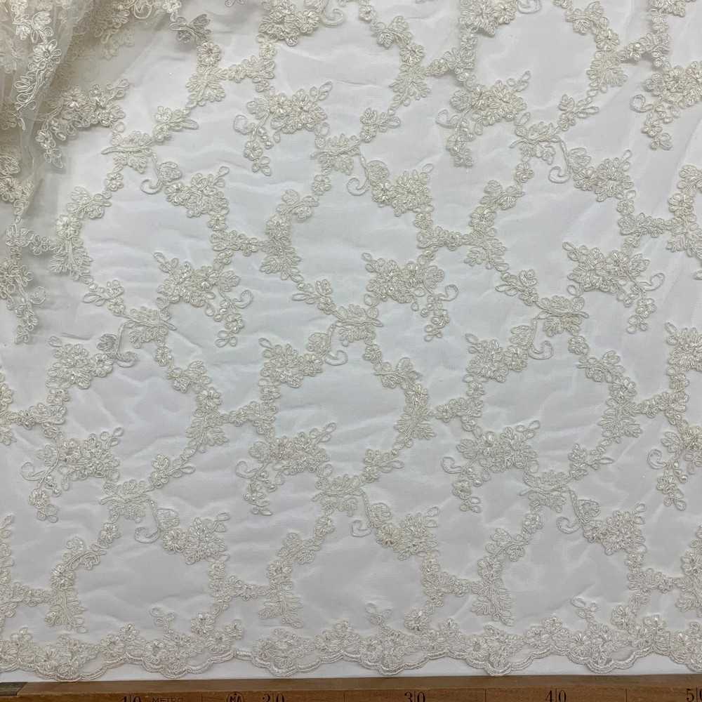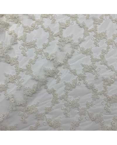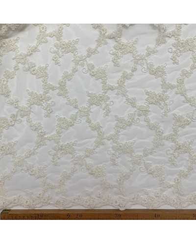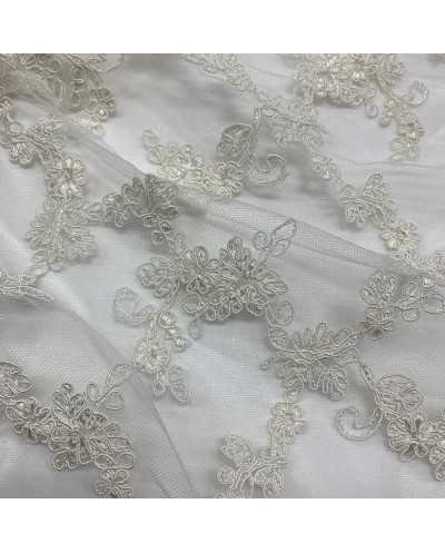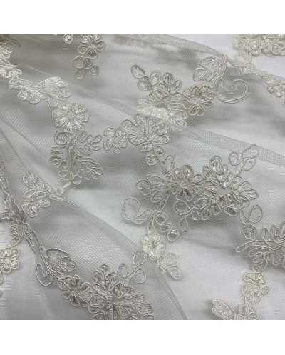 Tessuto Tulle Ricamato Rebrodè Panna 50 Cm