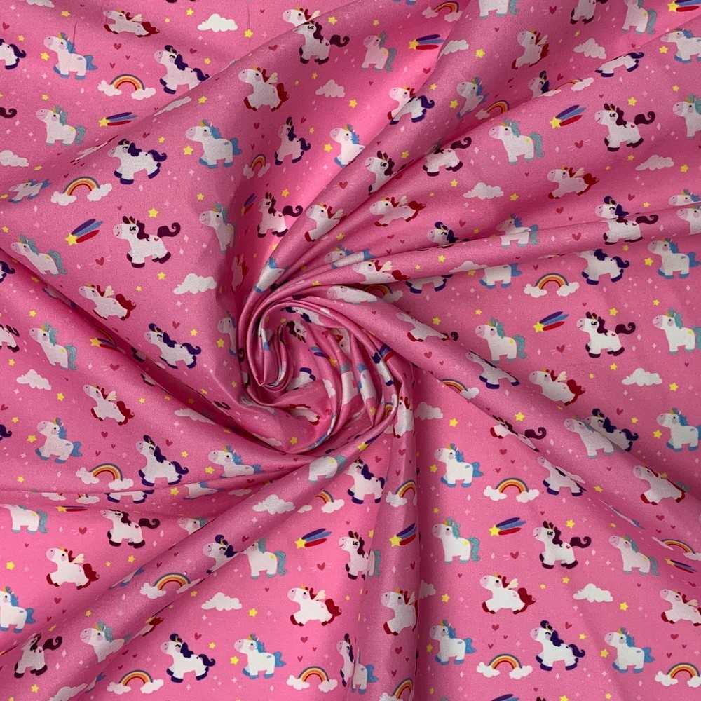 Tessuto microfibra stampe baby disegno Unicorno fondo fucsia