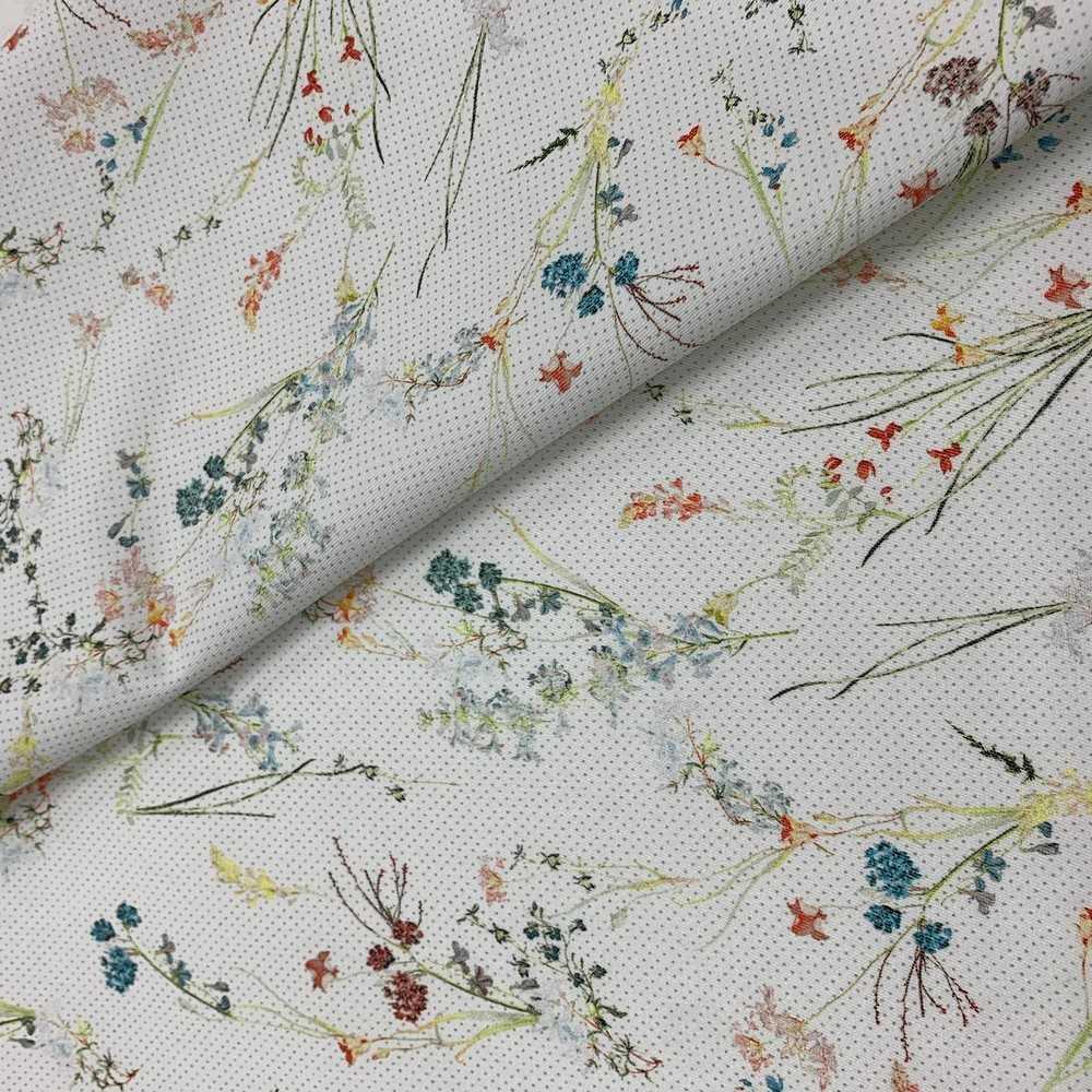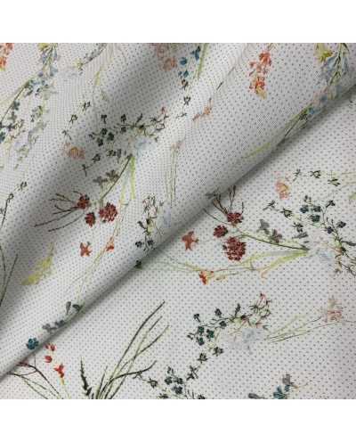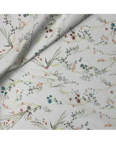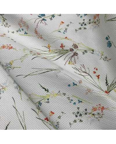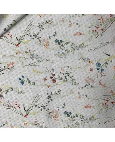 Tessuto Jeans Elastico Fiori Bianco 50 Cm