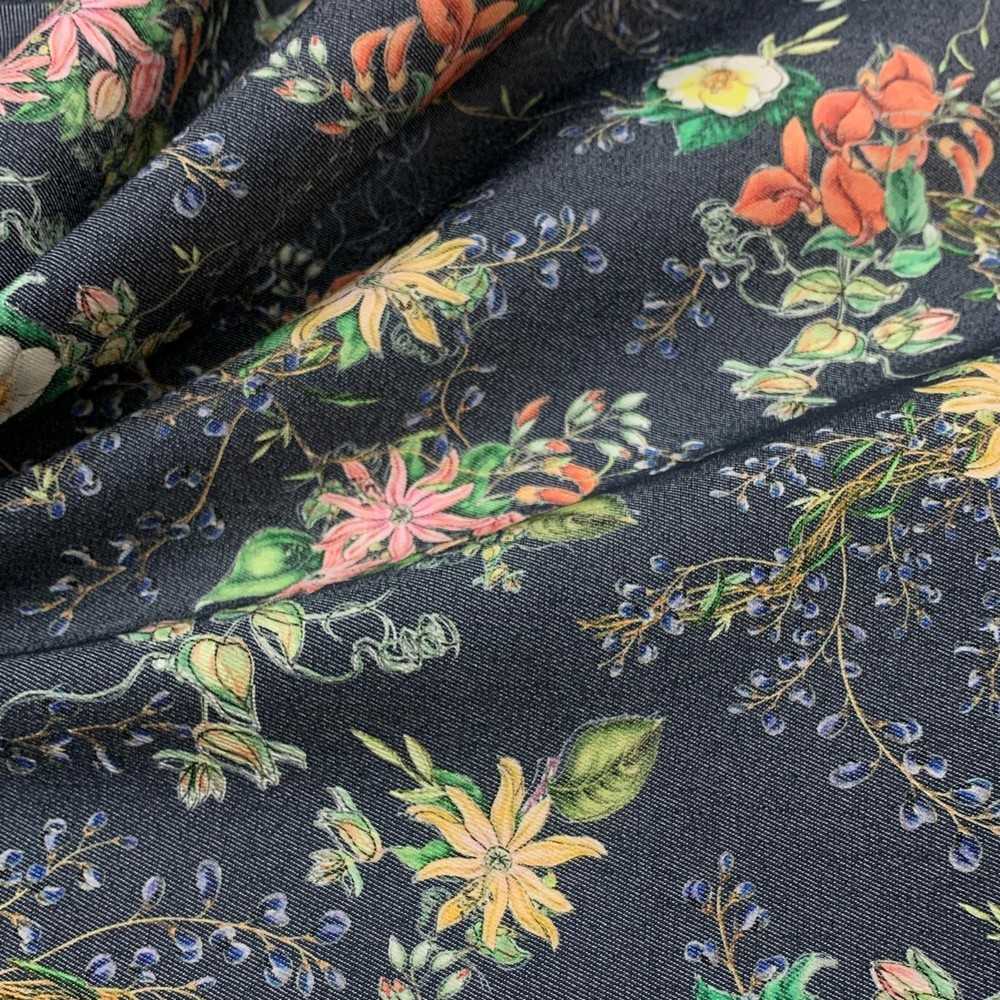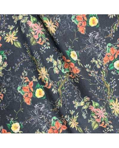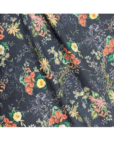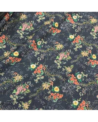Tessuto Jeans Elastico Fiori Colorati 50 Cm