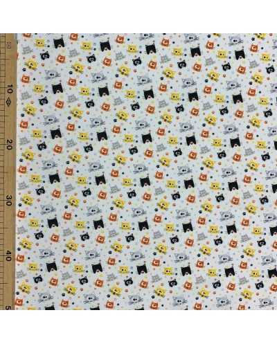 Tessuto microfibra stampe baby disegno Gattini fondo bianco