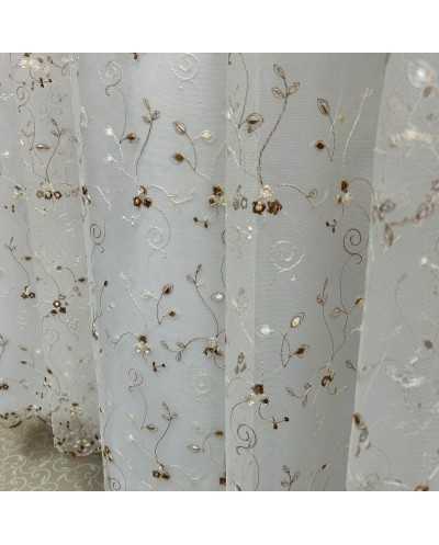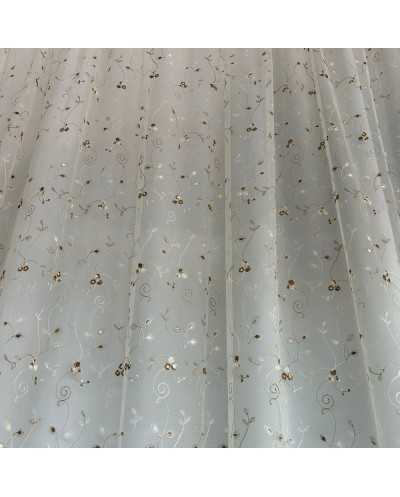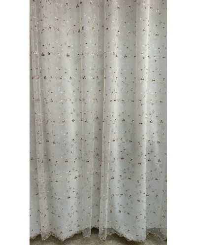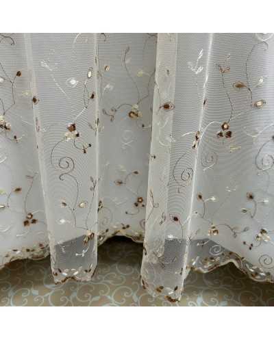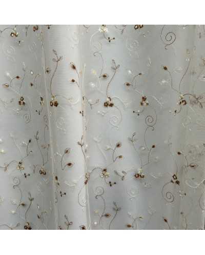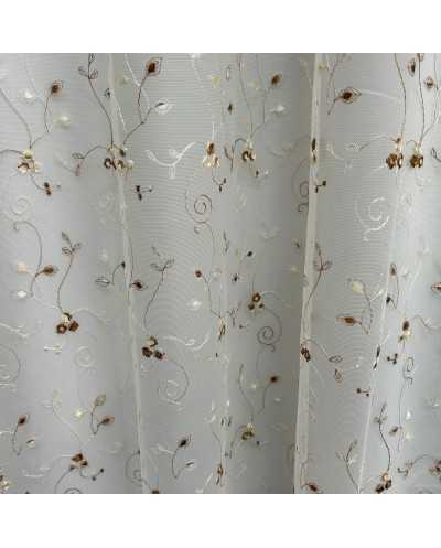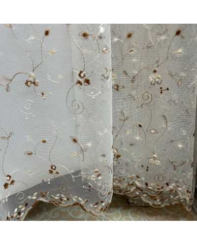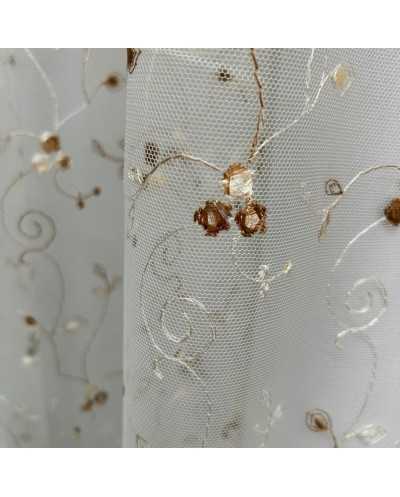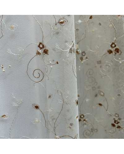 Tessuto Tenda Tulle Ricamato Fiorellino Marrone 50 Cm