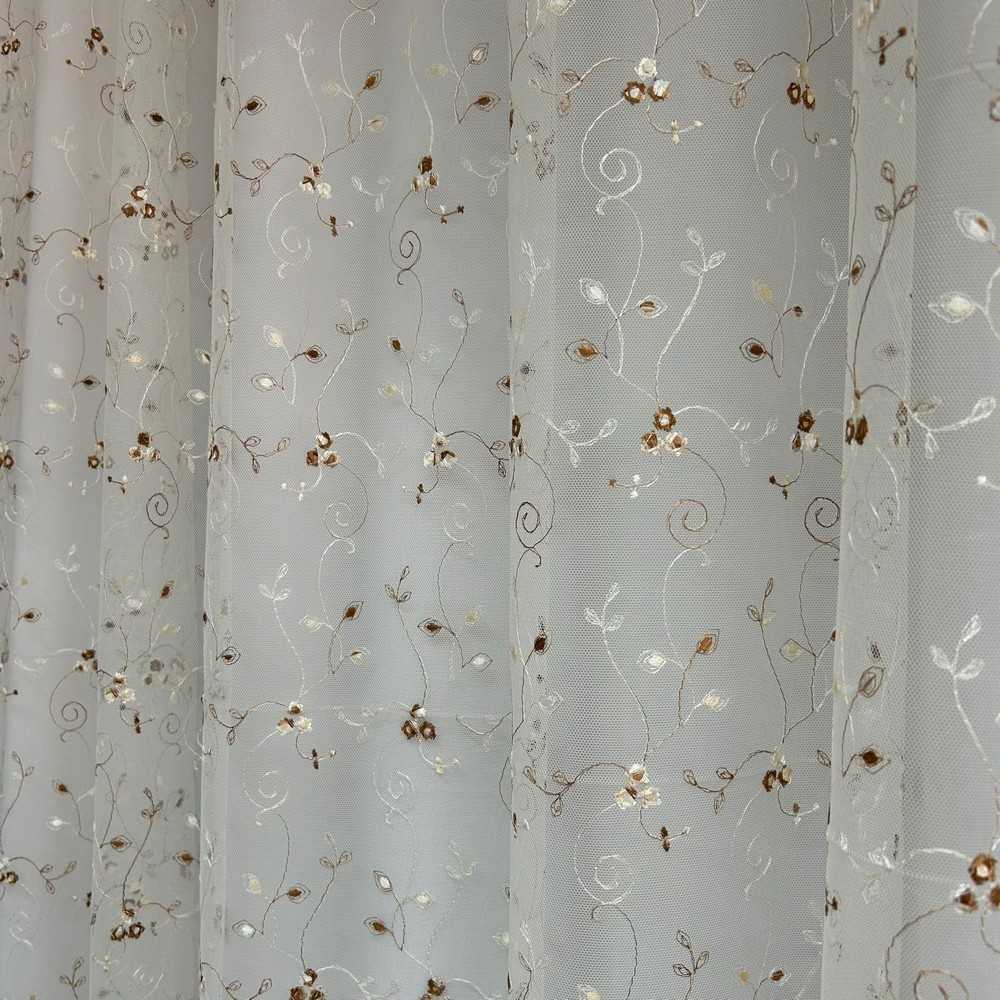 Tessuto tenda tulle panno ricamato fiorellini marrone