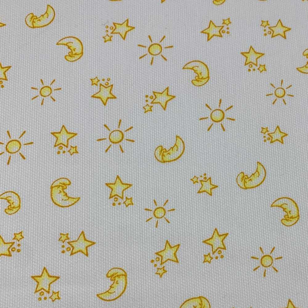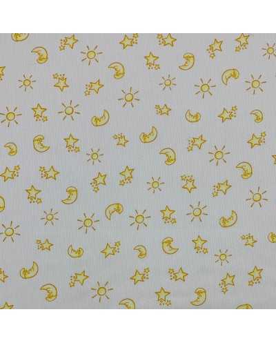 Tessuto cotone millerighe stampato sole, luna e stelle