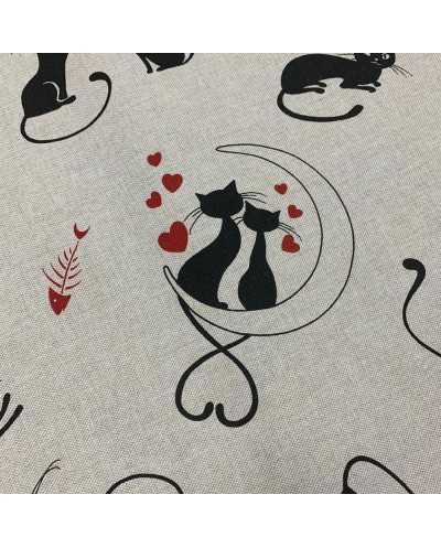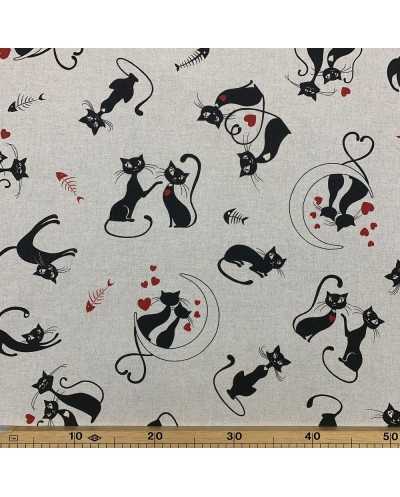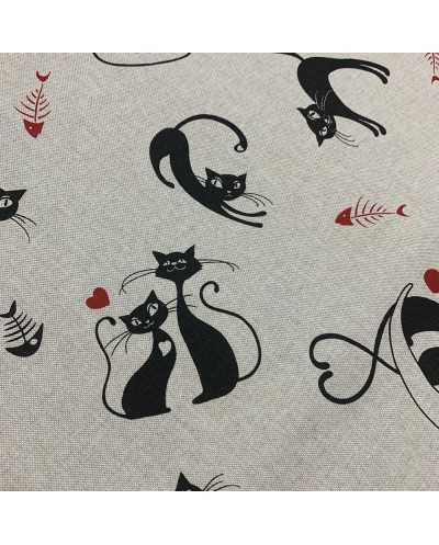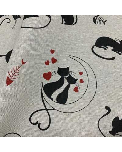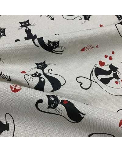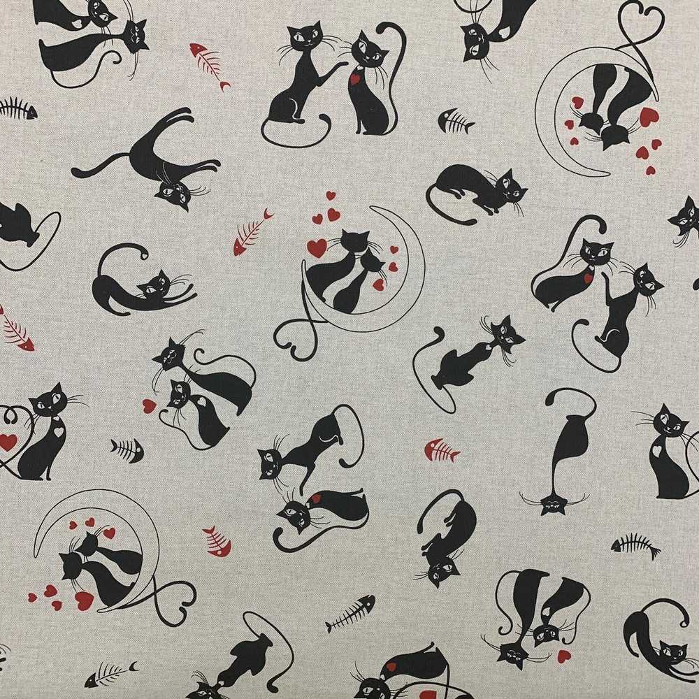 Tessuto panama stampato Black Cats fondo grezzo bollito
