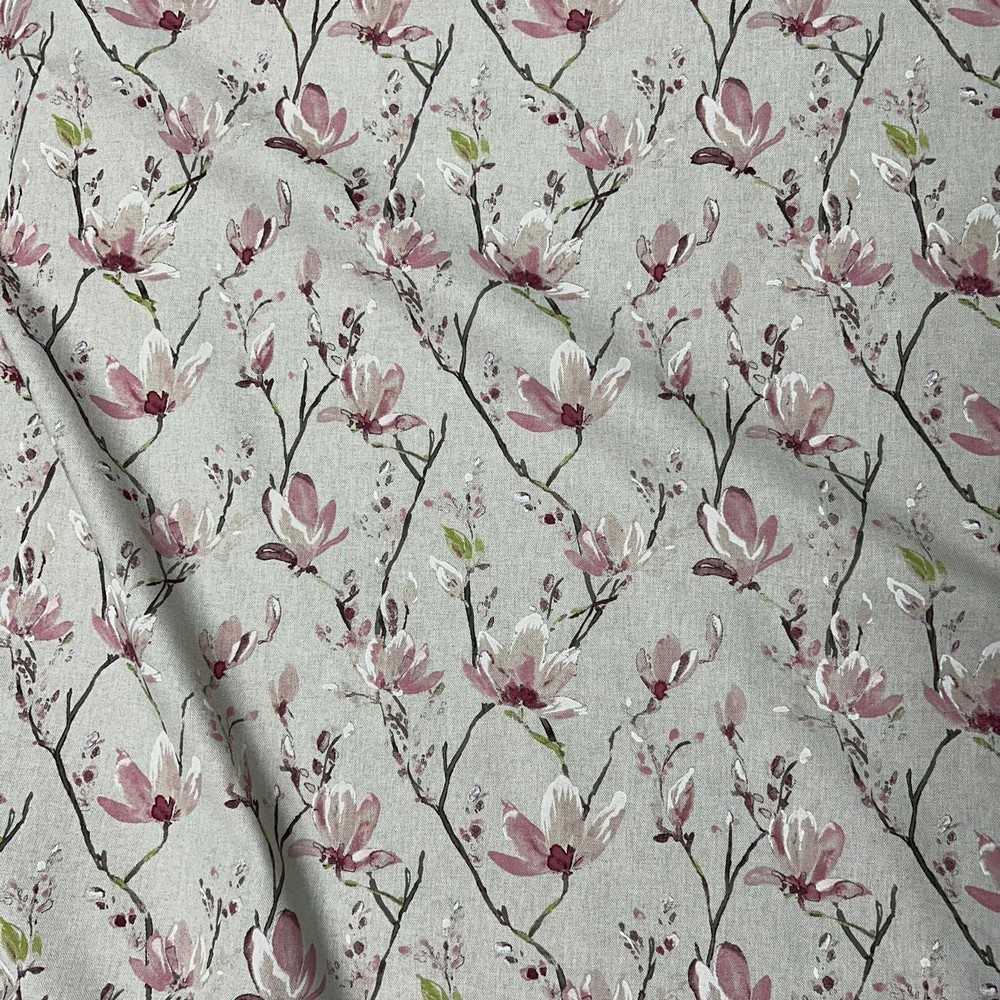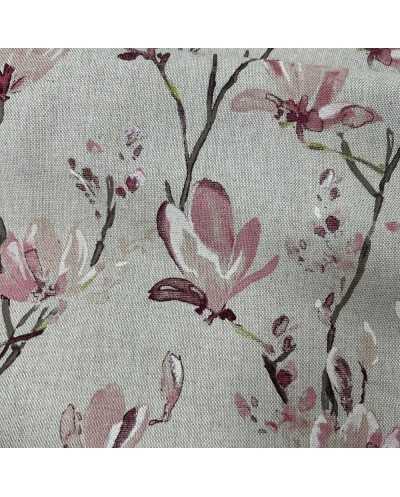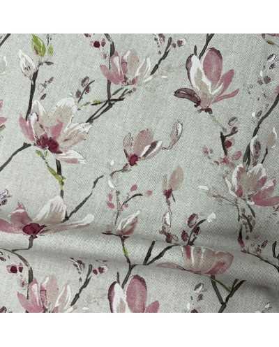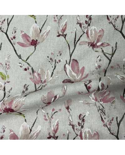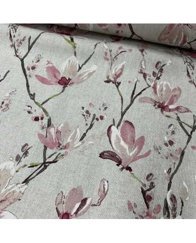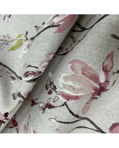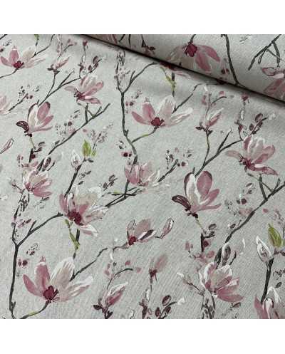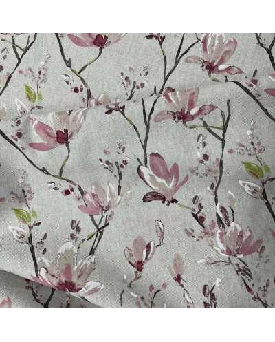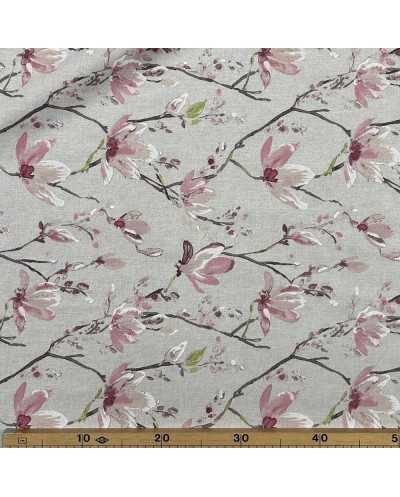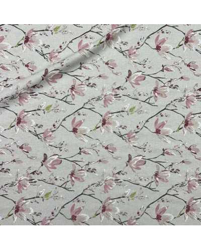 Tessuto panama stampato disegno fiori di pesco fondo grezzo bollito