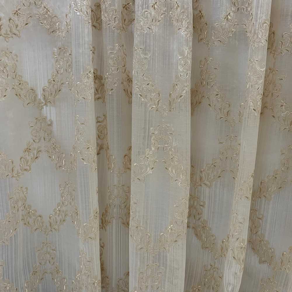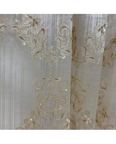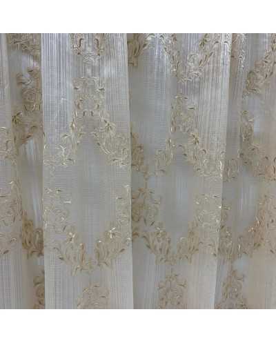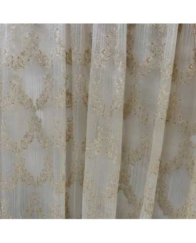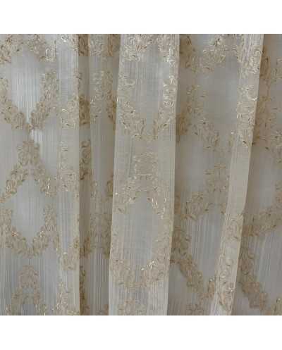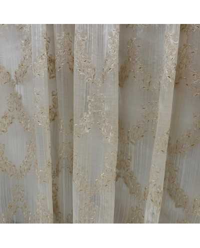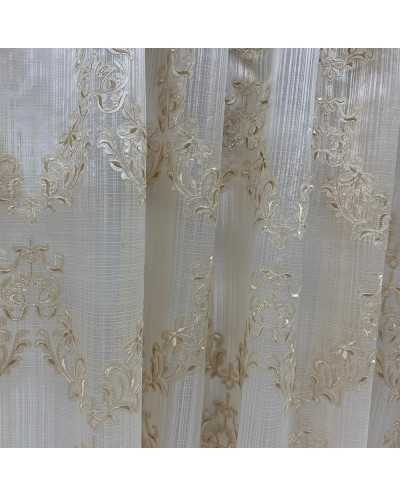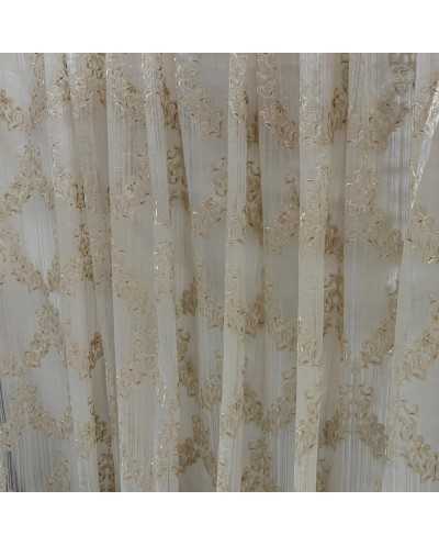 Tessuto Tenda Organza Medaglione Foglie Beige 290x295 Cm