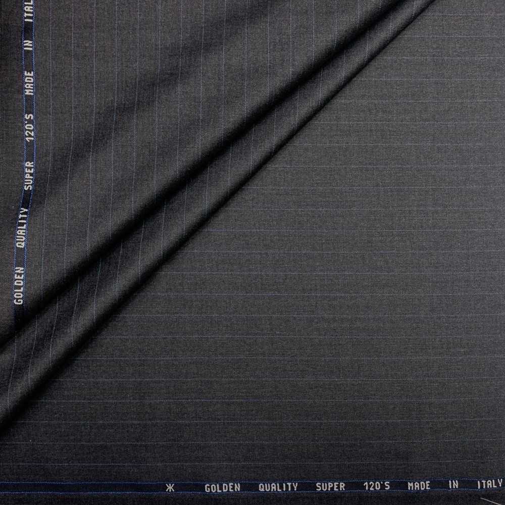 Tessuto Tasmania 120's grigio gessato celeste