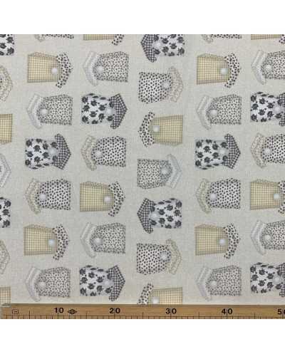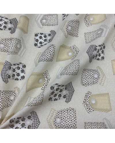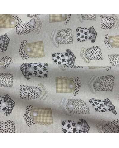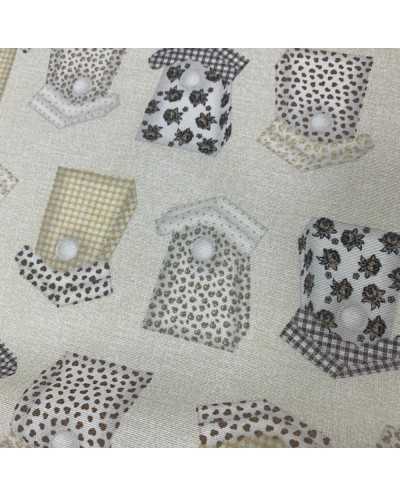 Tessuto cotone stampato per tappezzeria arredo casette fiorellini