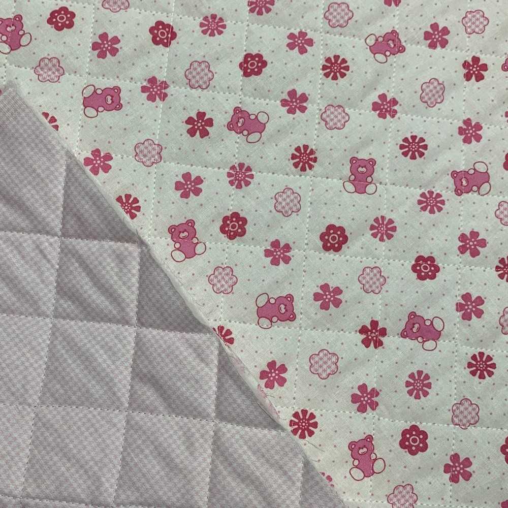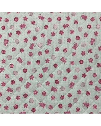 Tessuto trapunto cotone doppiafaccia orsetto pieddepoul rosa