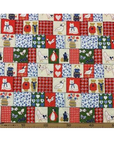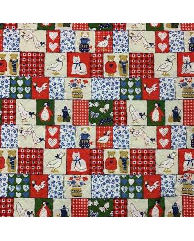 Tessuto cotone trapuntato doppiafaccia disegno patchwork animali