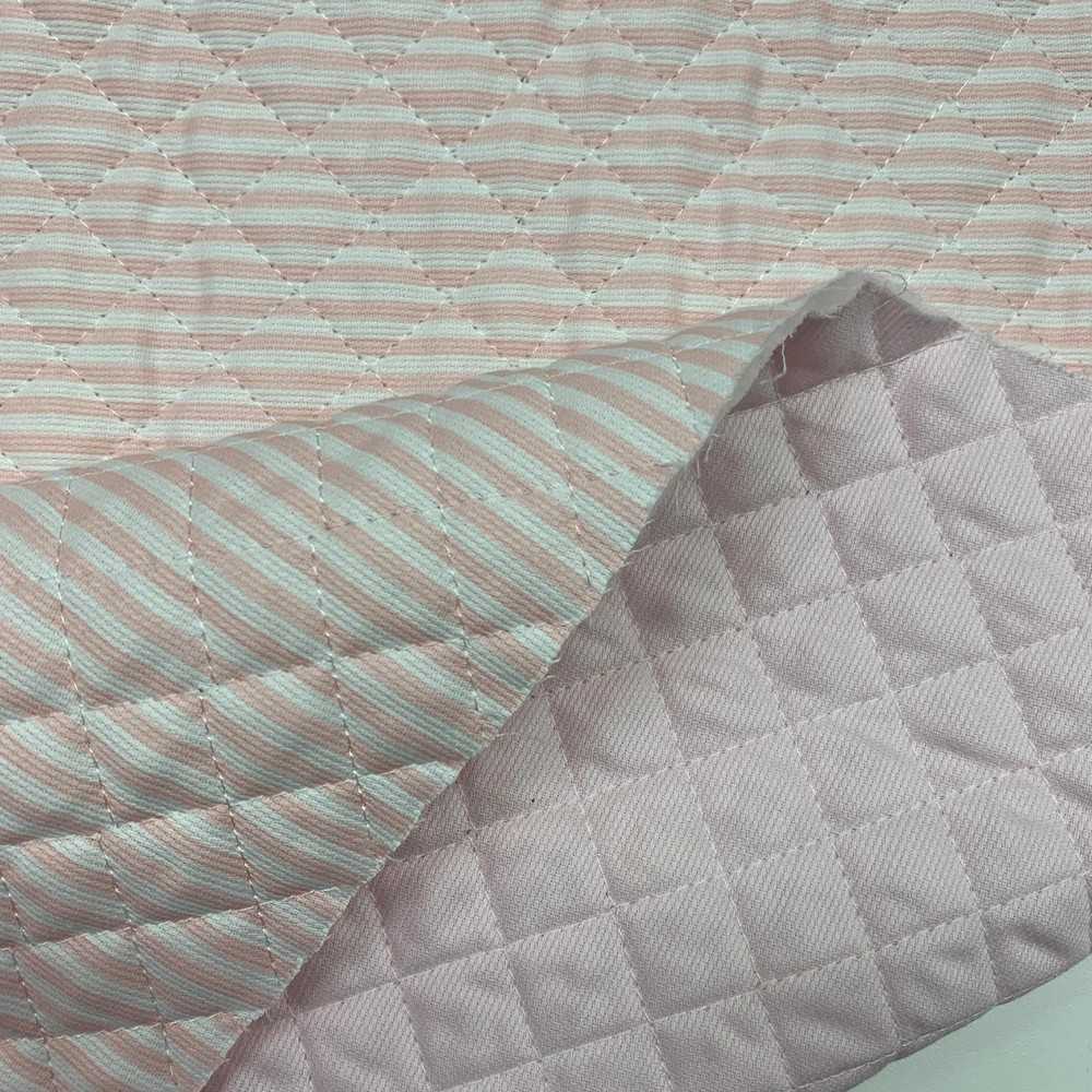 Tessuto cotone trapuntato doppiafaccia millerighe rigato rosa