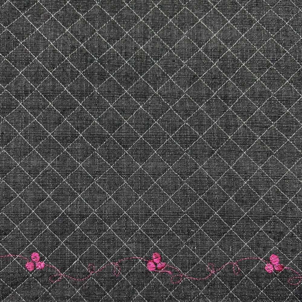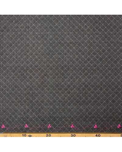 Tessuto trapunto monofaccia jeans scuro con ricamo smerlo solo da un lato