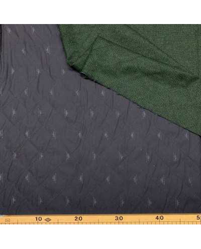 Tessuto trapunto misto lana trama juta verde bosco e cotone grigio asfalto
