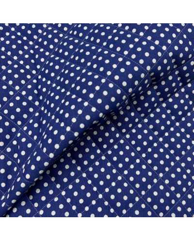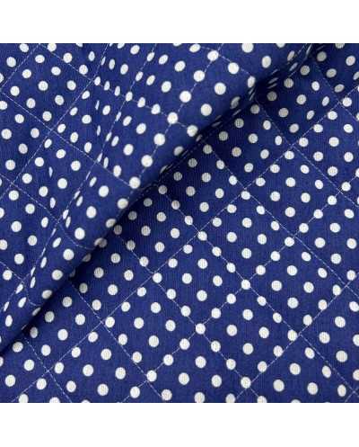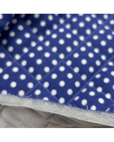 Tessuto trapunto monofaccia cotone bluette pois bianco