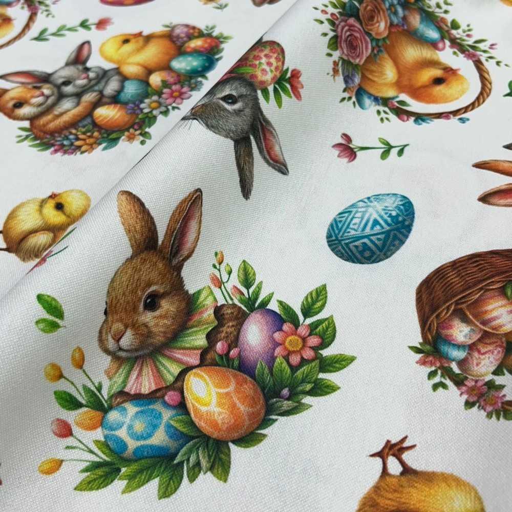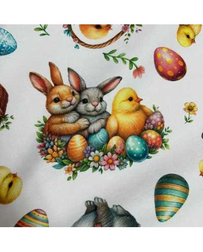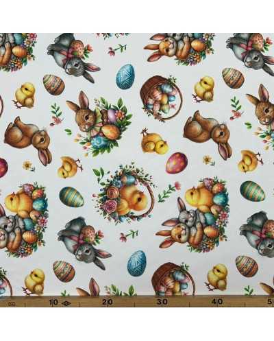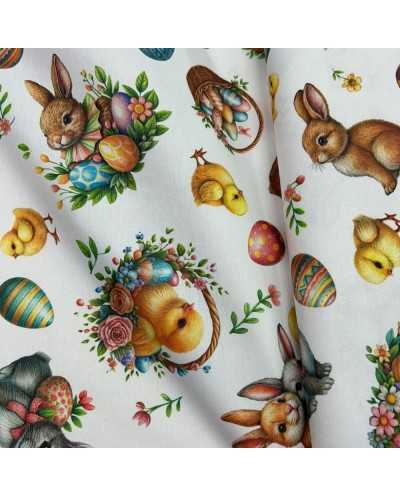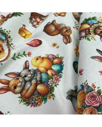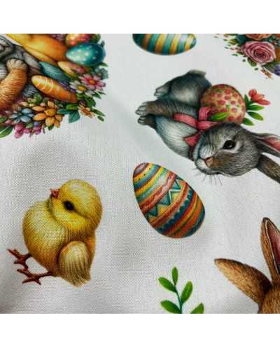 Tessuto panama di cotone stampa digitale pasquale disegno animaletti