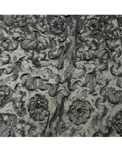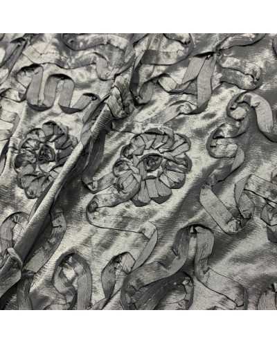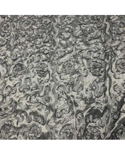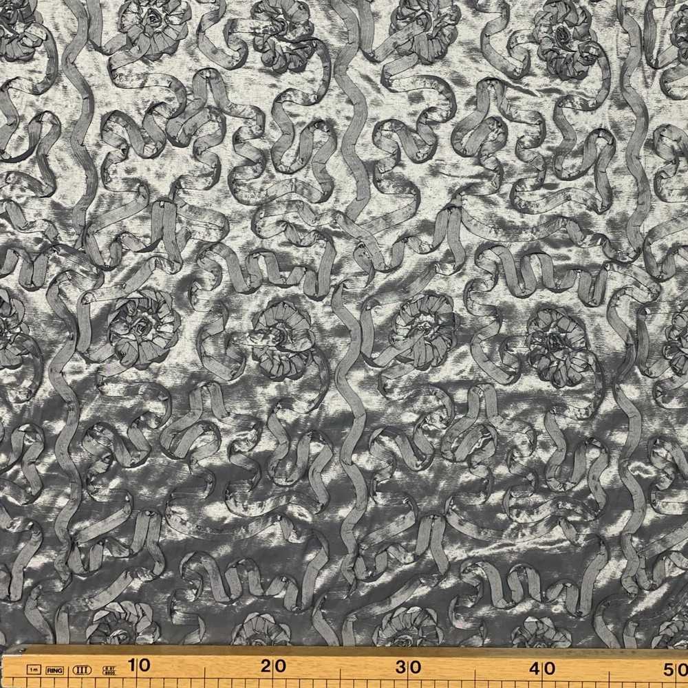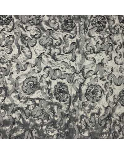Tessuto Tafeta Nastrini Grigio 50 Cm