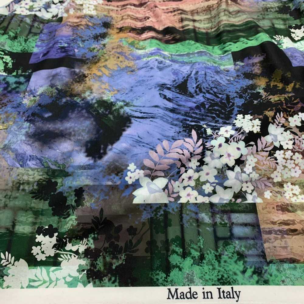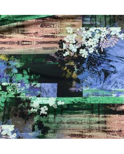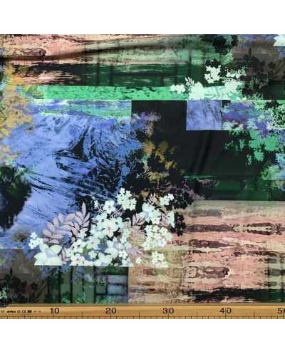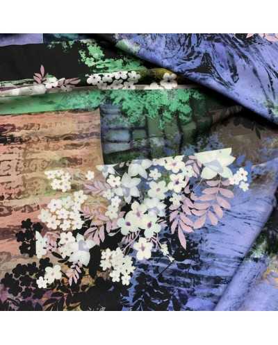 Tessuto jersey stampato disegno Fiorellini cobalto