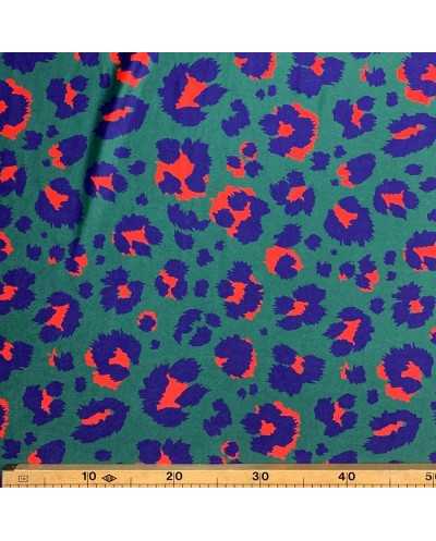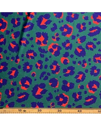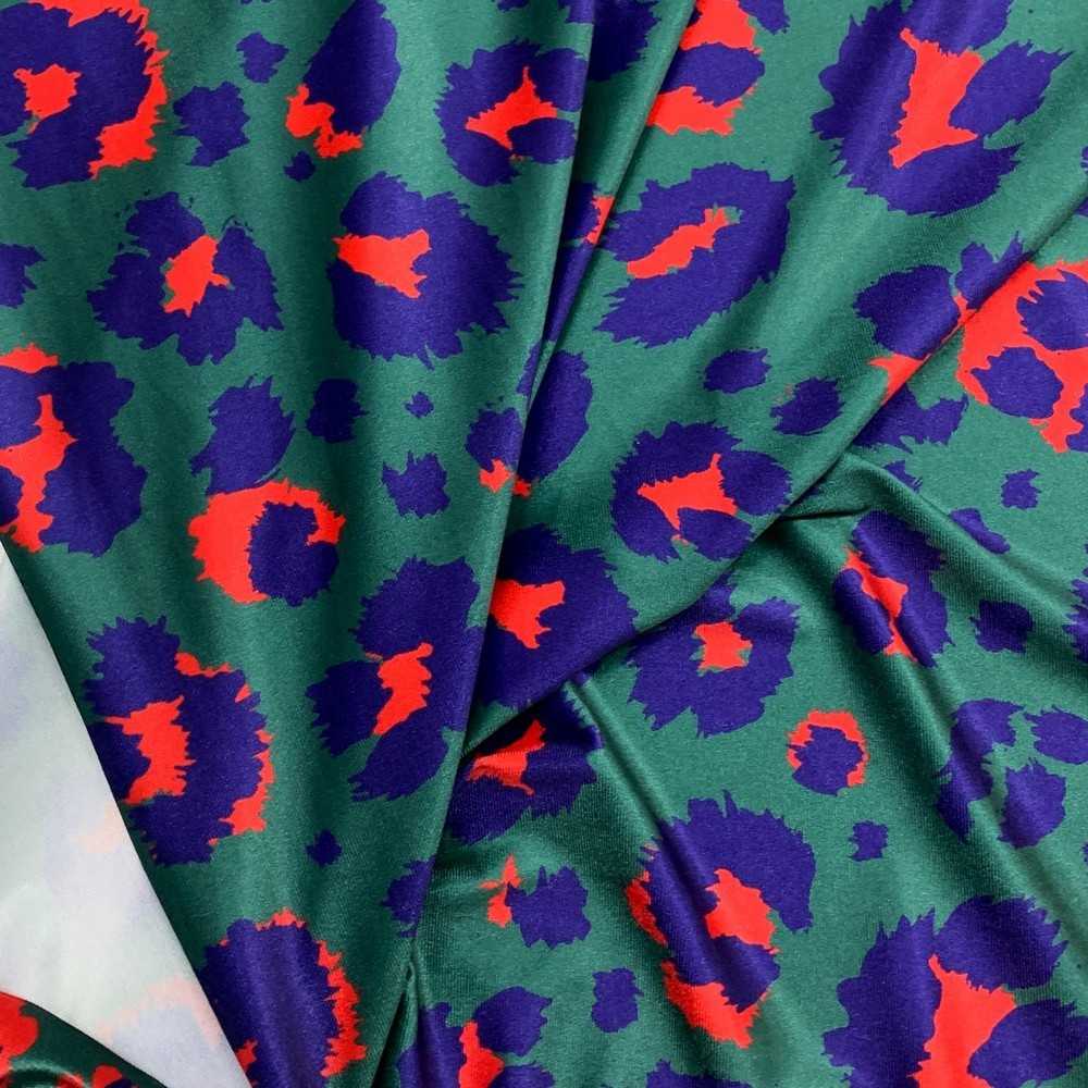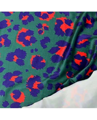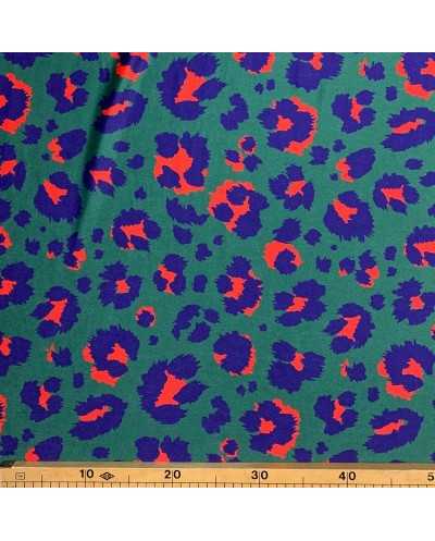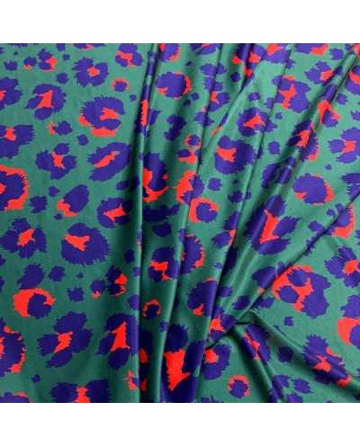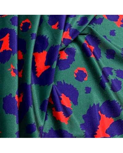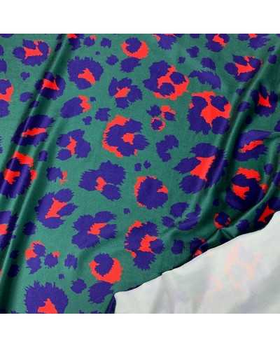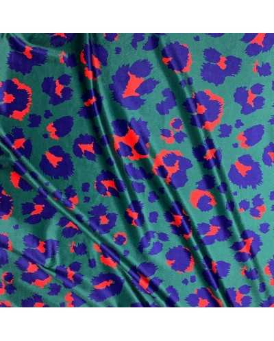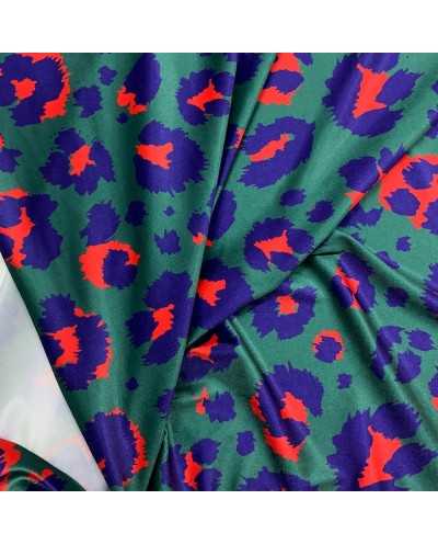 Tessuto velluto cinigliato elastico stampato disegno Leo verde