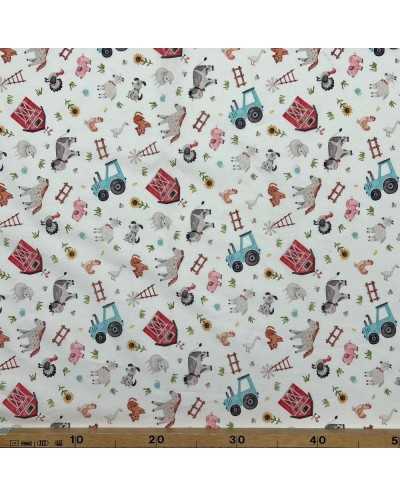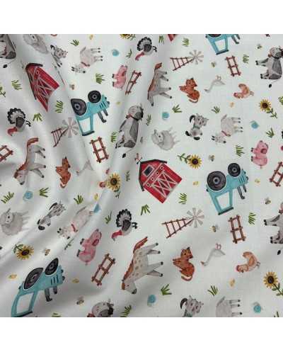 Tessuto cotone stampato disegno Fattoria