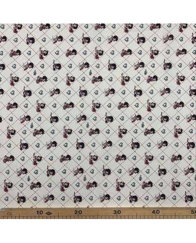 Tessuto cotone stampato disegno Mafalda fondo bianco