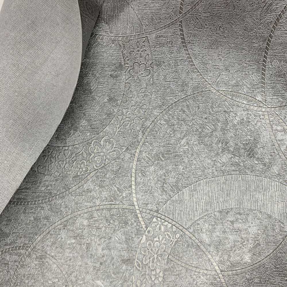 Tessuto ecopelle felpata stampata disegno Cerchi decorati color argento