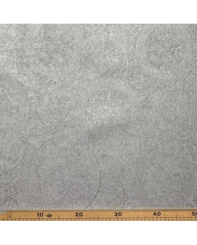 Tessuto Ecopelle Stampata Cerchi Decorati 50 Cm Argento