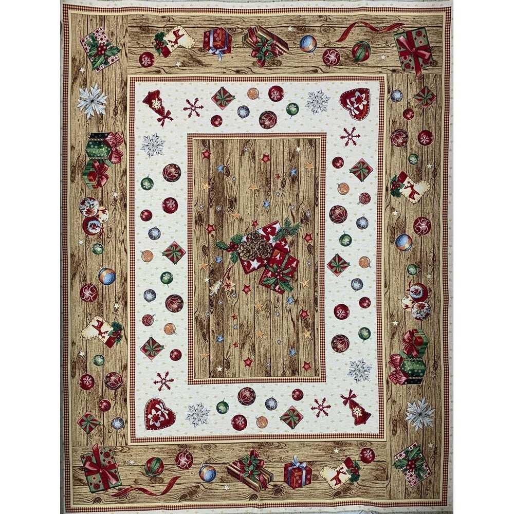 Pannello Gobelin Copritavolo Natalizio Legno 140x180 Cm