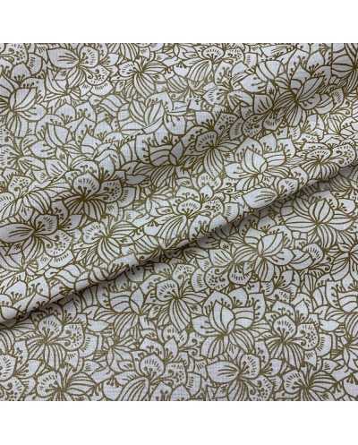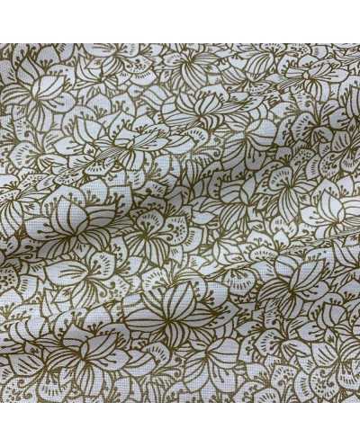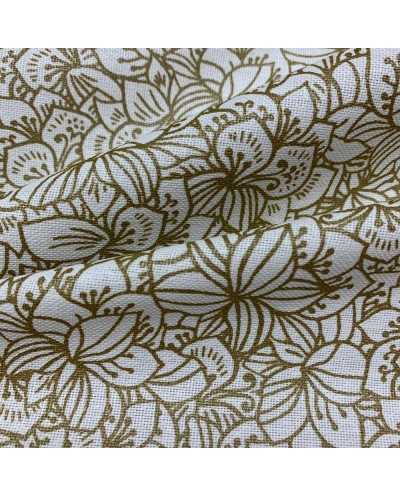 Tessuto Panama Natale Fiori Oro 20 Cm