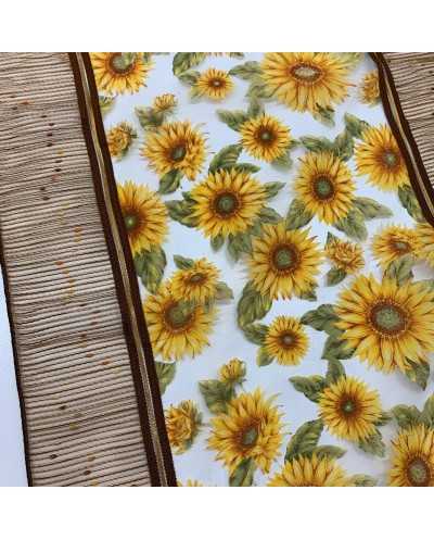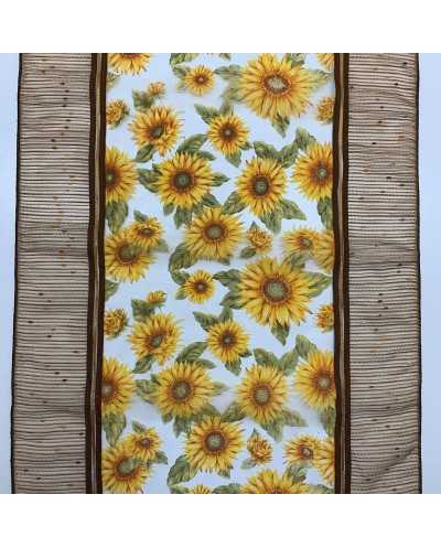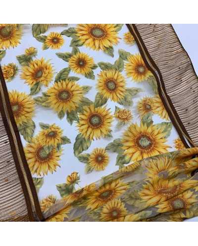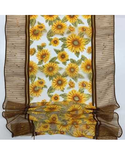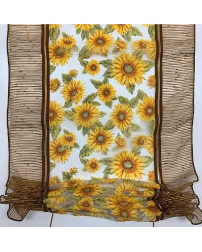 Tessuto Tendina 60 Pacchetto Organza Girasoli Marrone 50 Cm