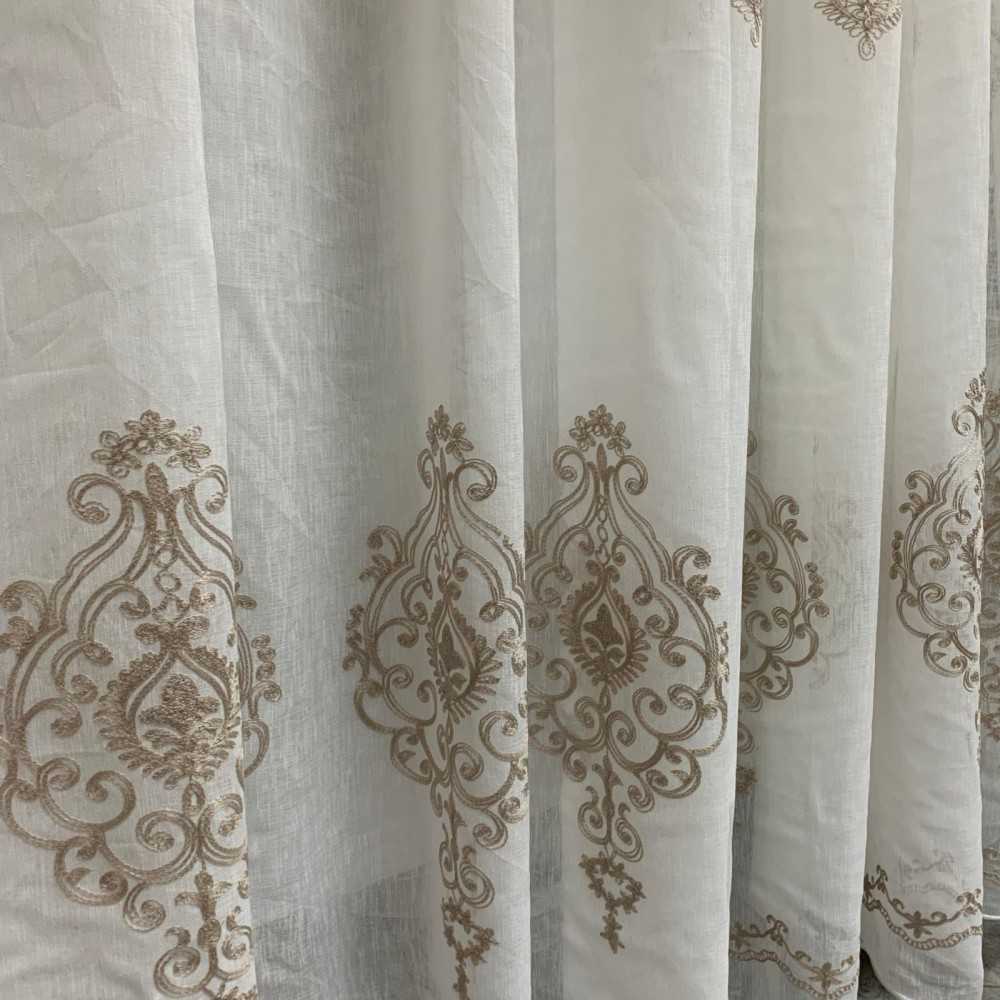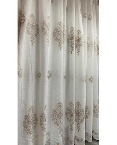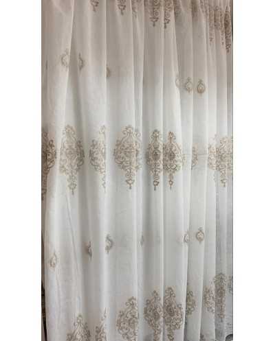 Tessuto Tenda Ricamata Medaglione Beige 300x295 Cm