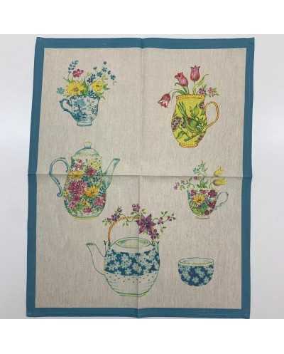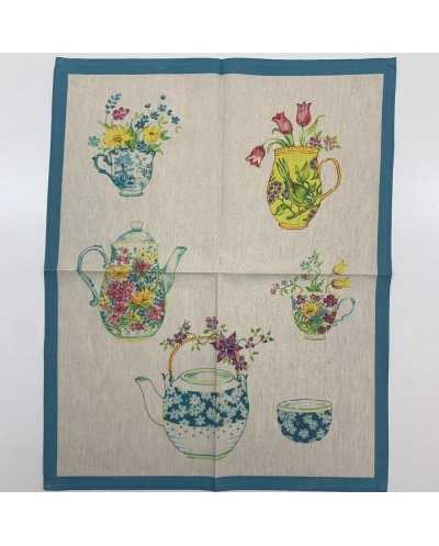 Asciugapiatti Misto Lino Bollito Vasi Fioriti 55x70 Cm