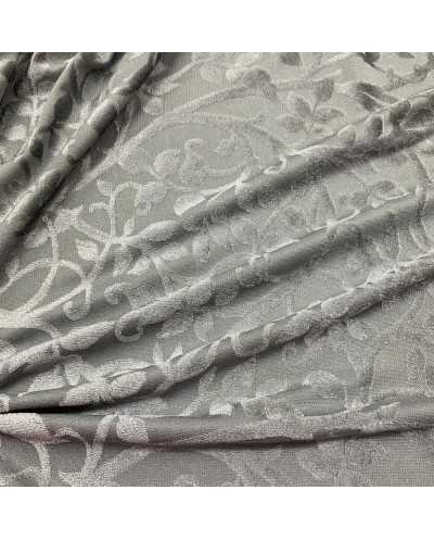 Tessuto Ciniglia Devorè Ramage 50 Cm Grigio