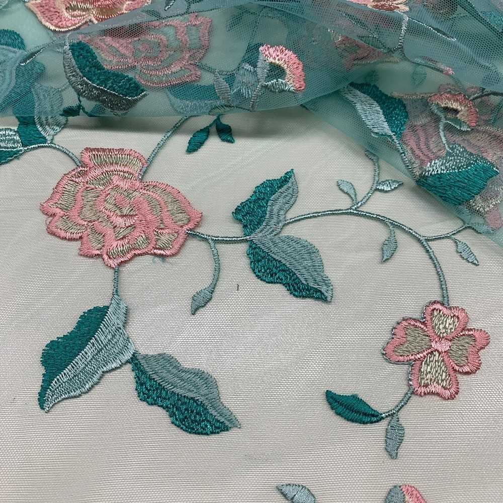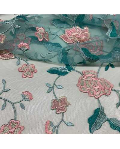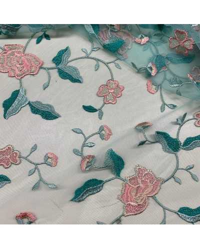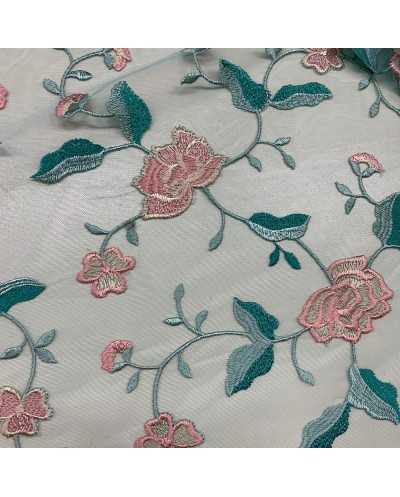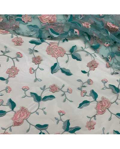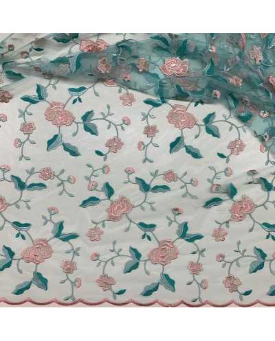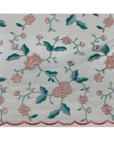 Tessuto Tulle Ricamato Tiffany Fiori Rosa 50 Cm