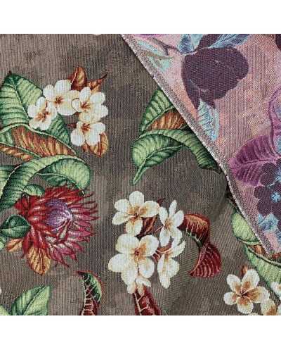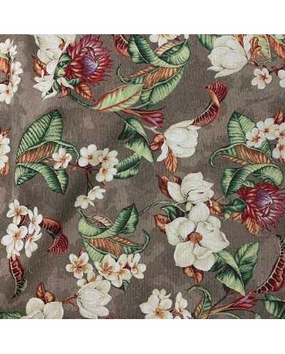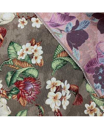 Tessuto gobelin I cotone tappezzeria disegno fiori fondo tortora