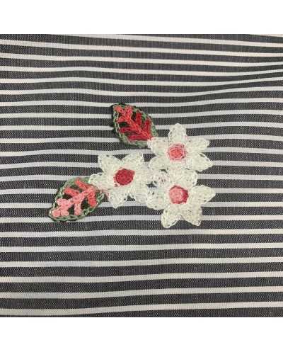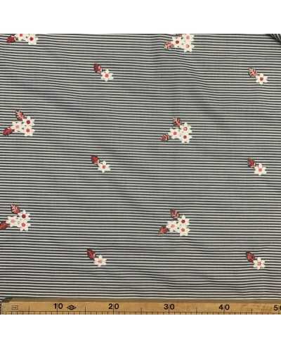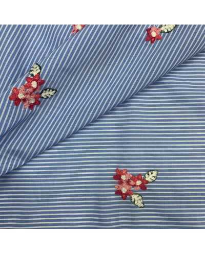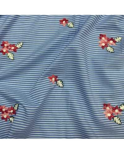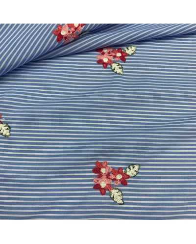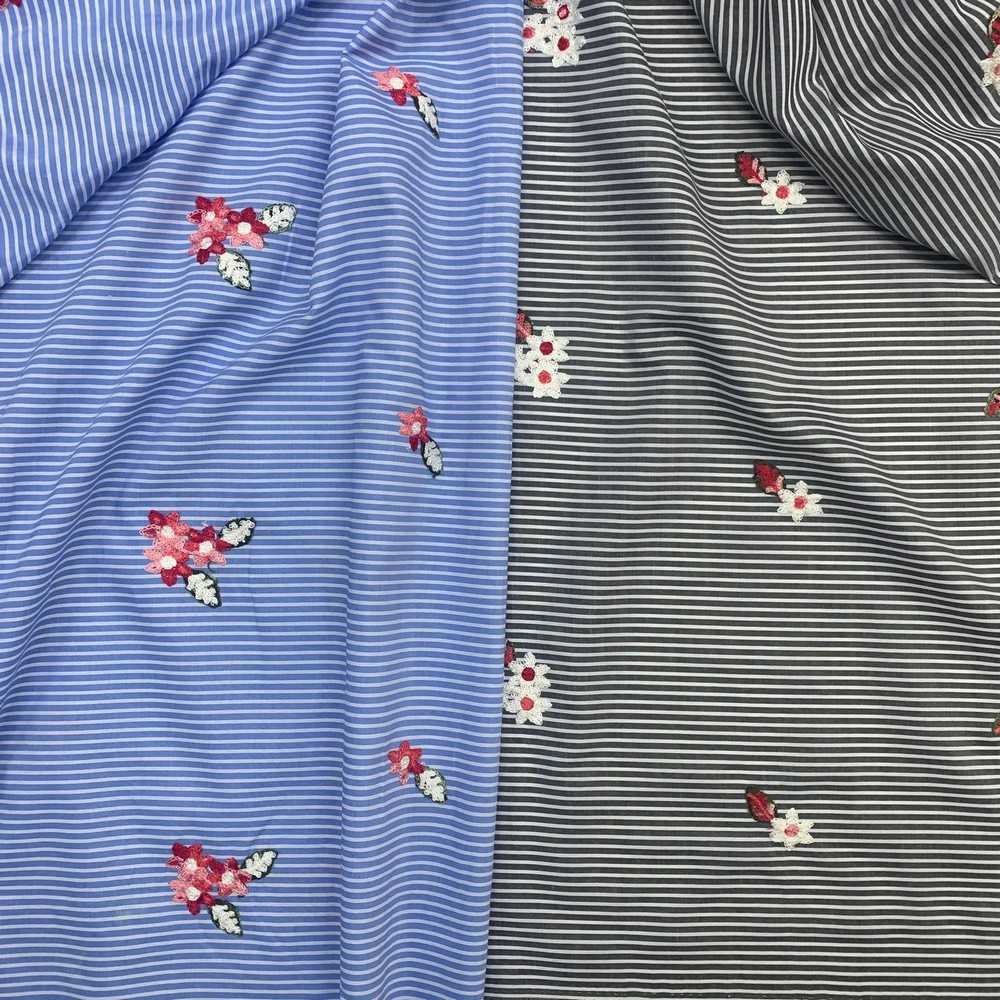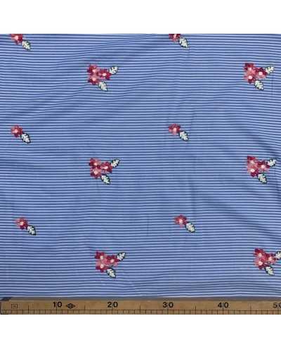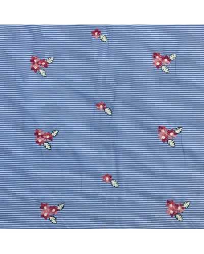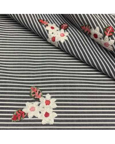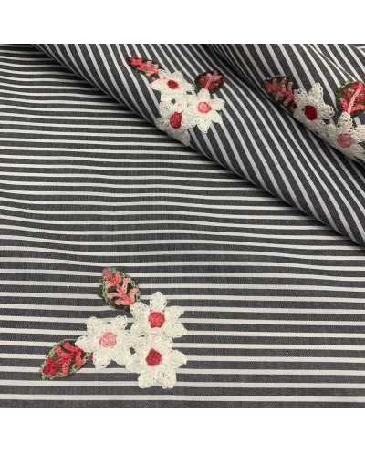 Tessuto camiceria cotone disegno rigatino fiori ricamato