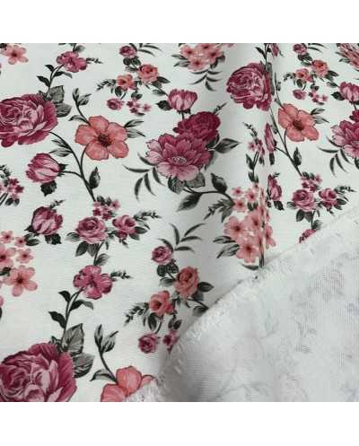 Tessuto panama per tappezzeria disegno fiori rosa