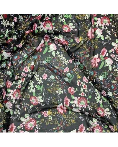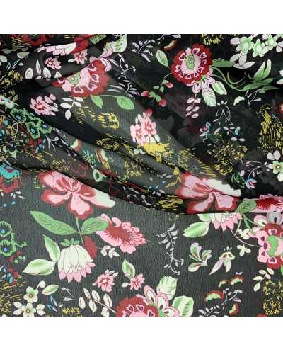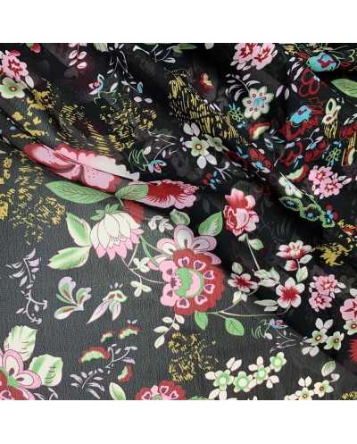 Tessuto Georgette Fiore Nero 50 Cm