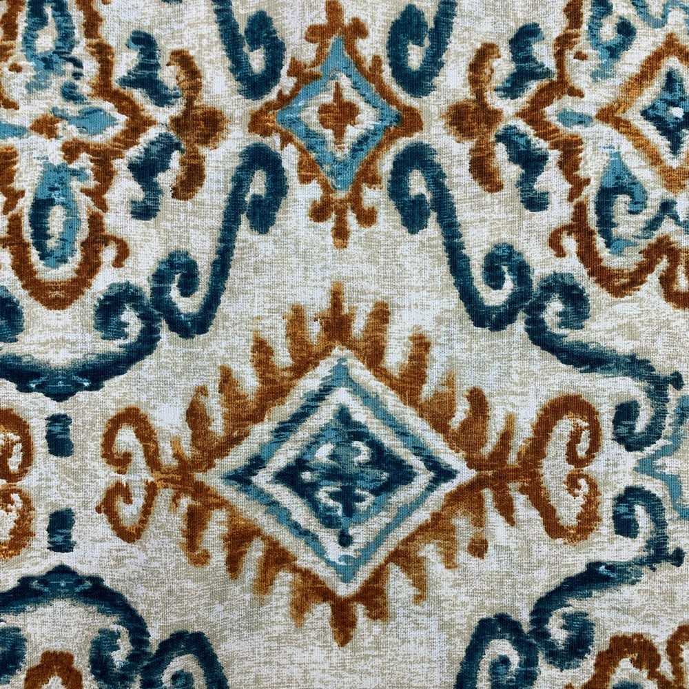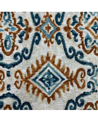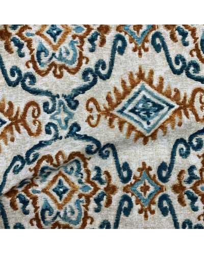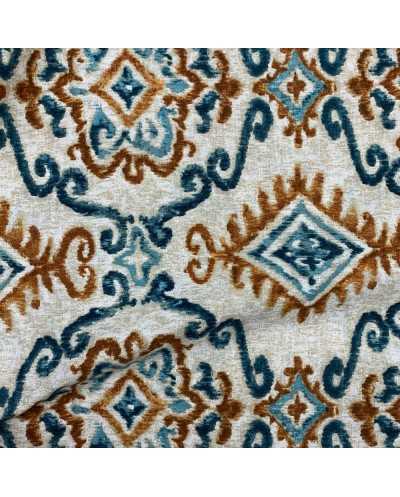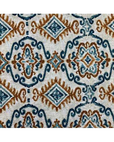 Tessuto panama stampato disegno Inca color azzurro