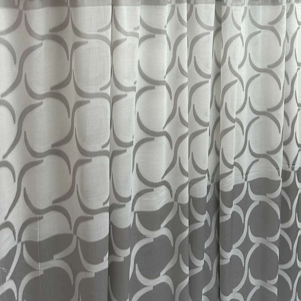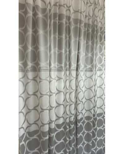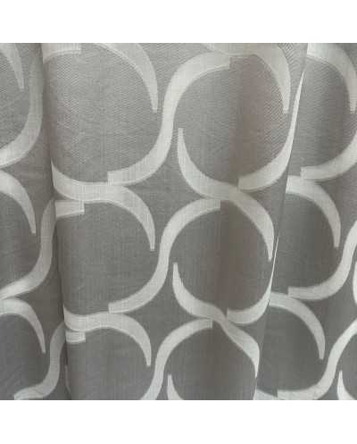 Tessuto tendaggio lavorazione jacquard fantasia disegno semicerchi e fasce orizzontali grigio e bianco