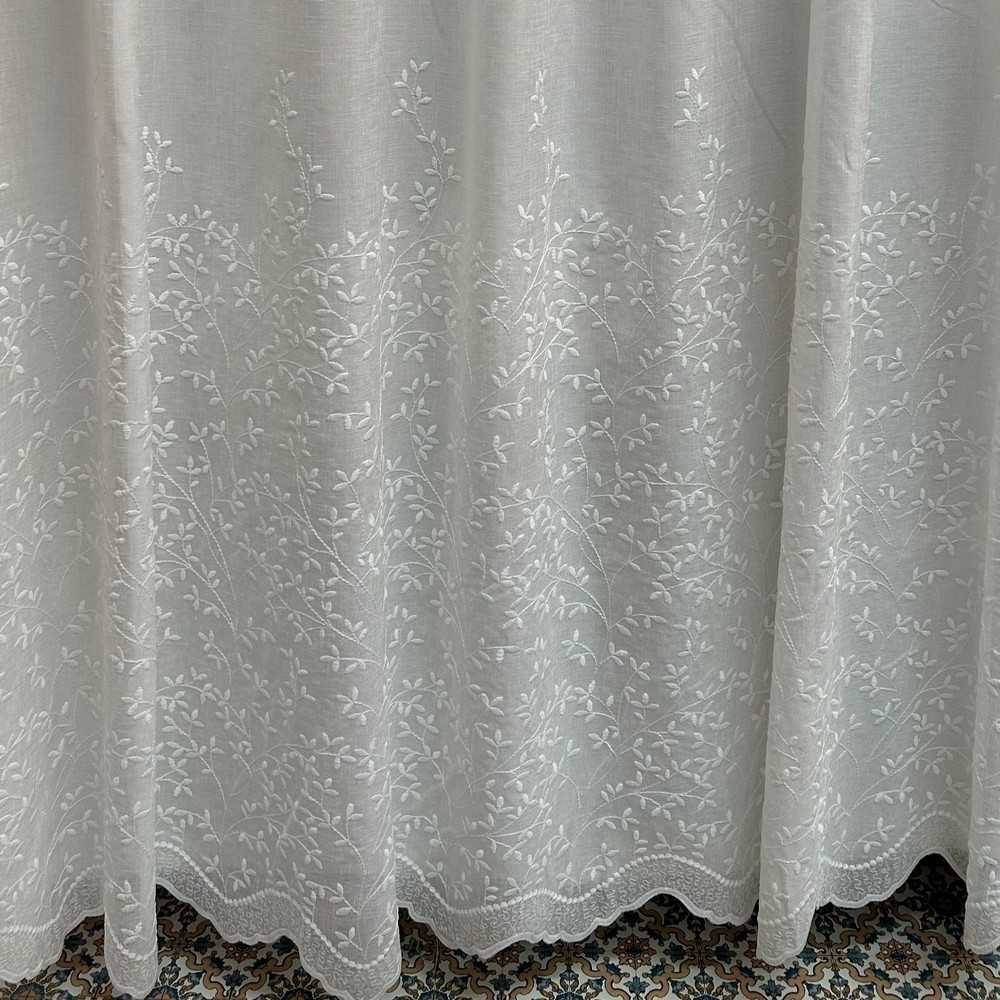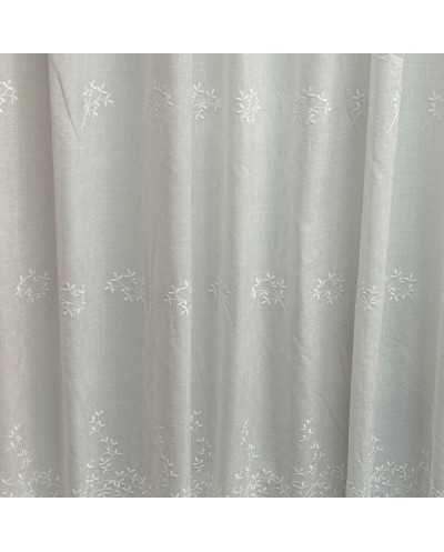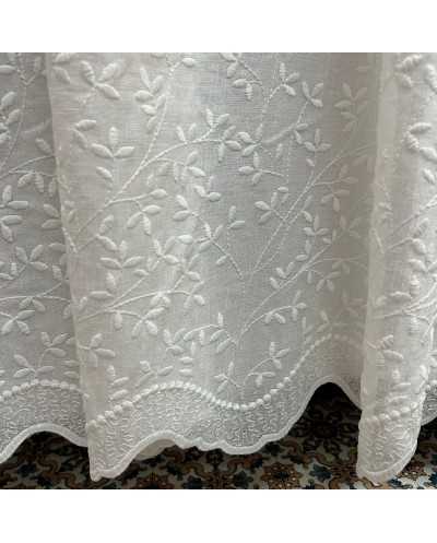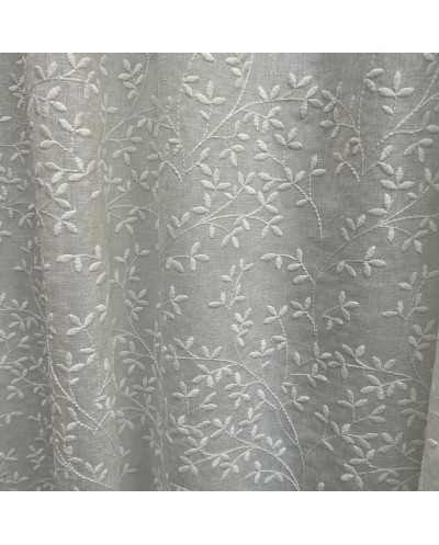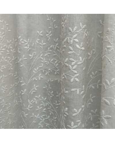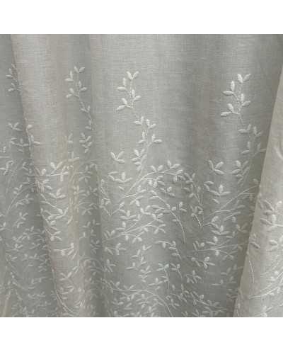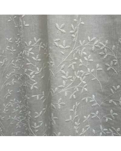 Tessuto tenda in misto lino ricamata Aleli color bianco naturale