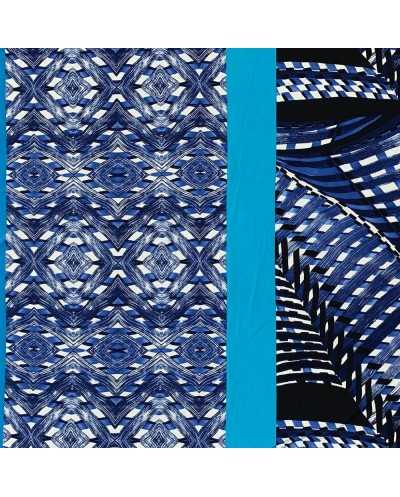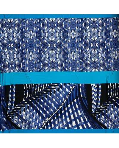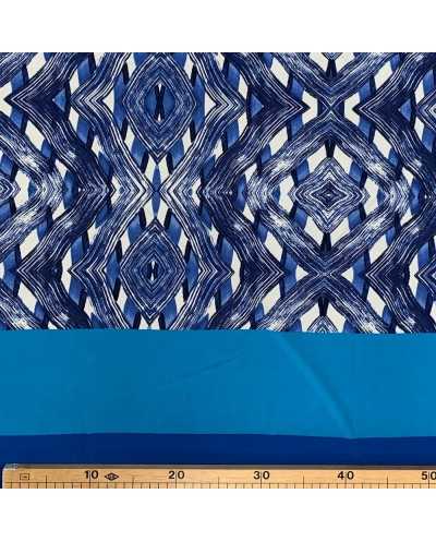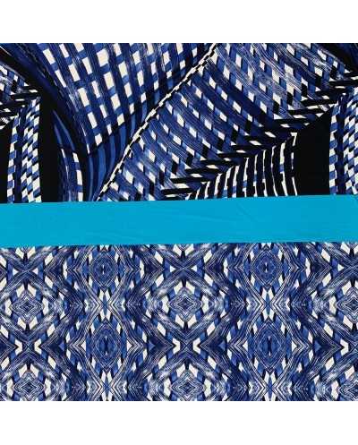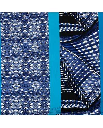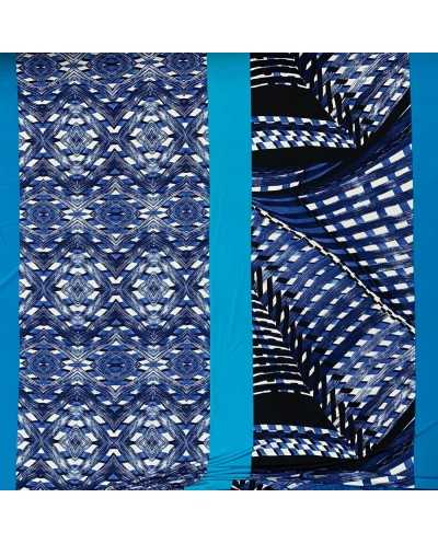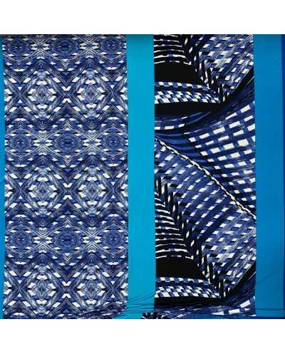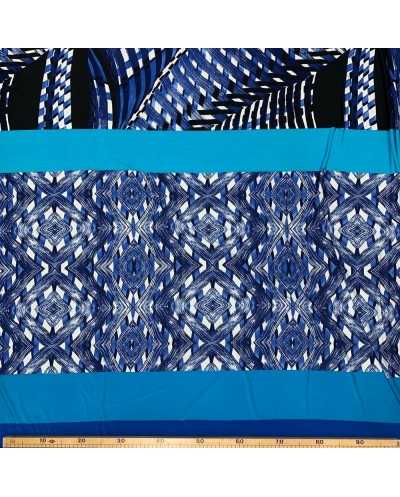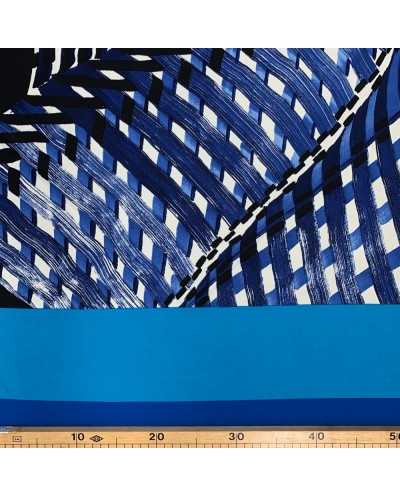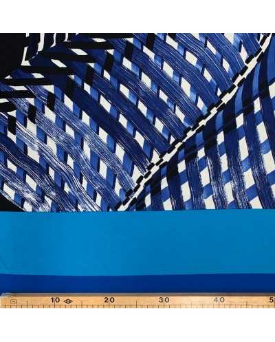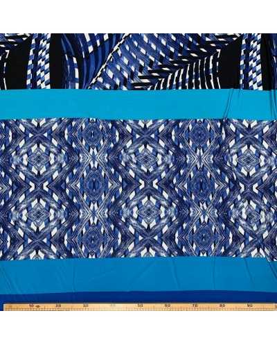Tessuto jersey elastica stampata disegno fasce azzurro