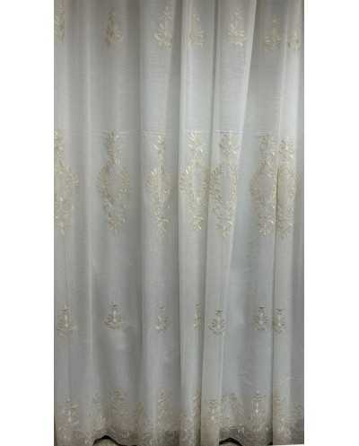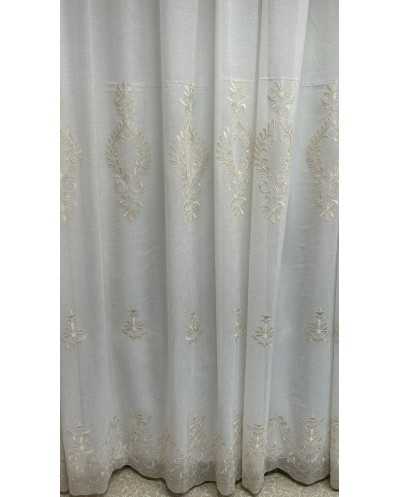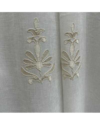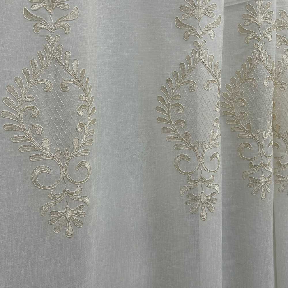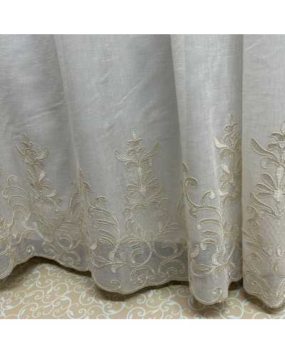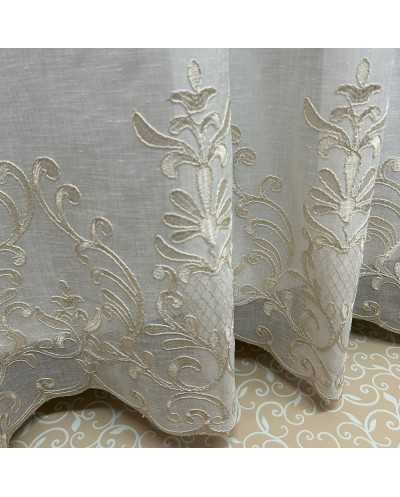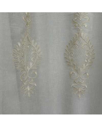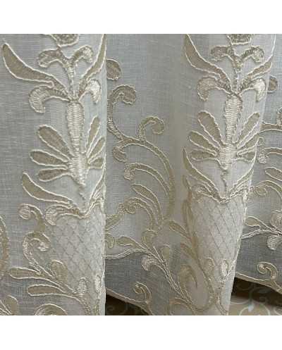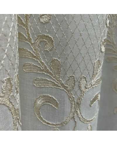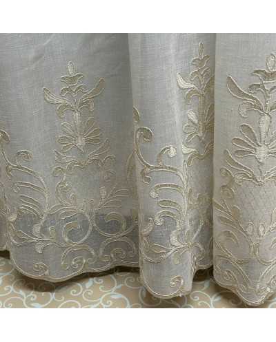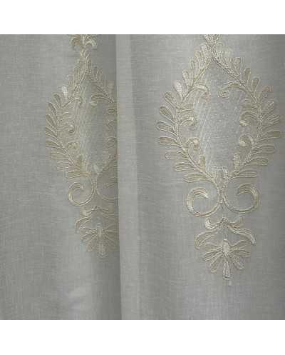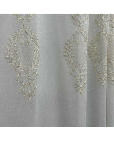 Tessuto tenda ricamata con medaglione fondo naturale, medaglioni color beige