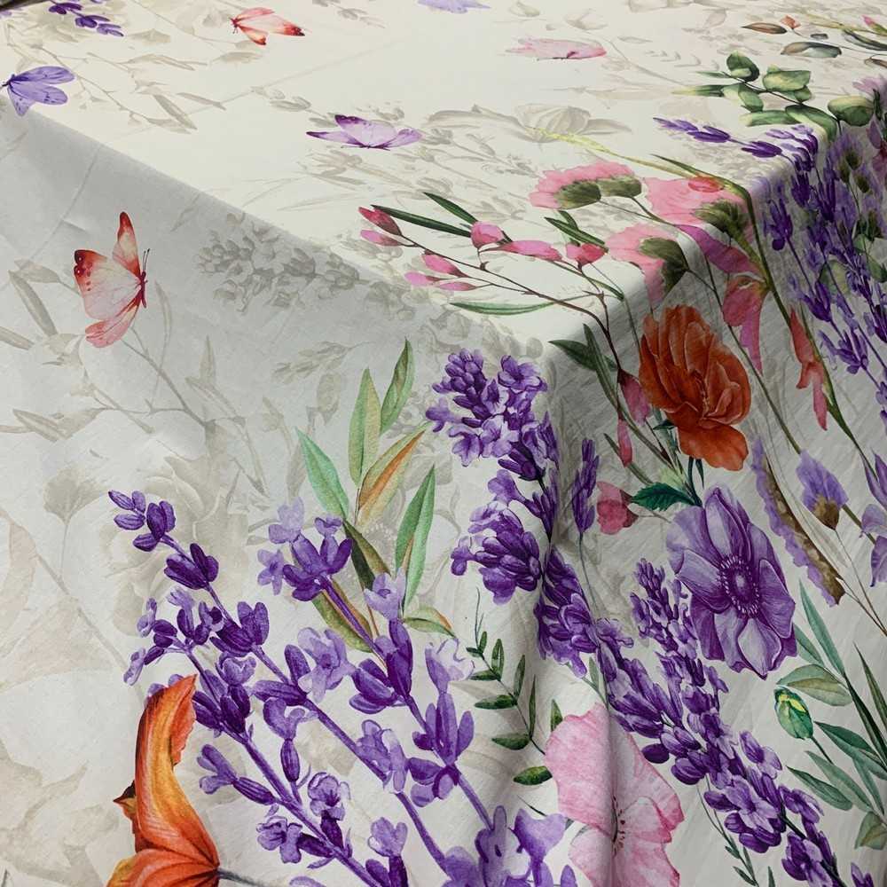 Tessuto Tovagliato Balzato Fiori Lavanda 50 Cm