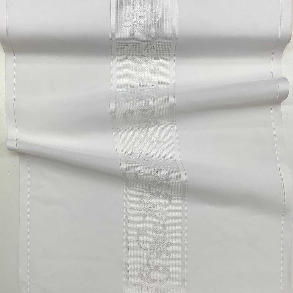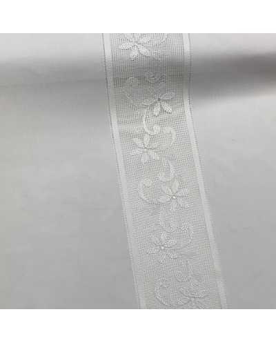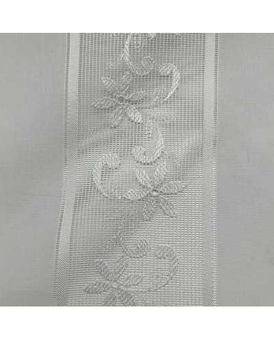 Tessuto tendina in misto lino con tramezzo tipo filet fiori
