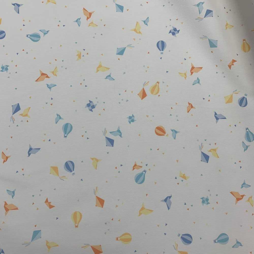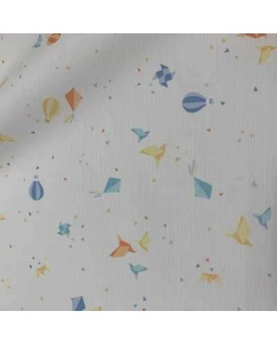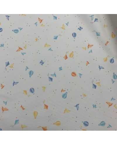 Tessuto cotone millerighe stampato disegno mongolfiere e aquiloni