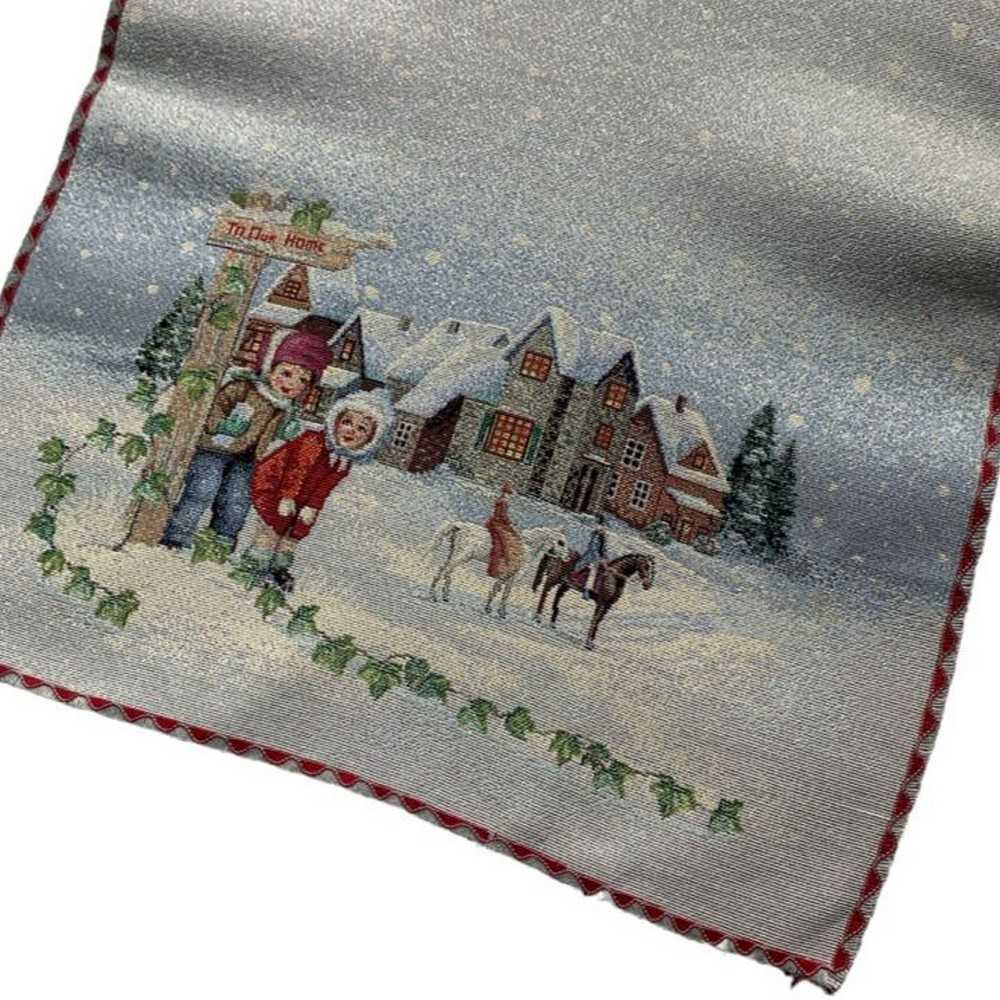 Guida Gobelin Natale Bambini Neve 45x140 Cm Rifinita
