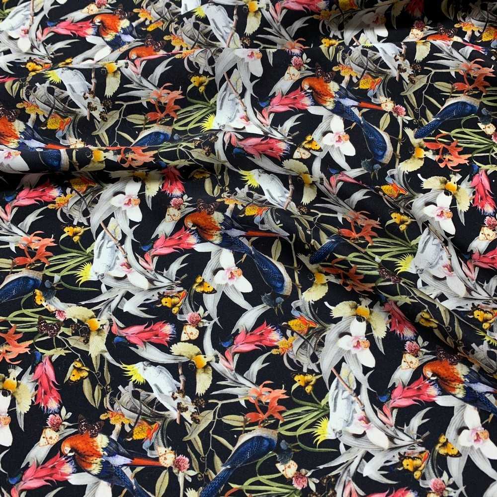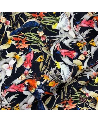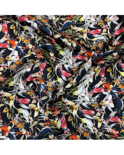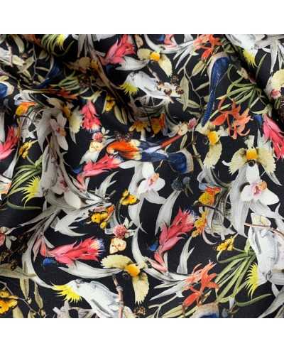 Tessuto pura seta stampata disegno Parrots color nero