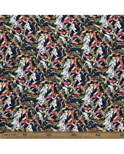 Tessuto Pura Seta Parrots Nero 50 Cm