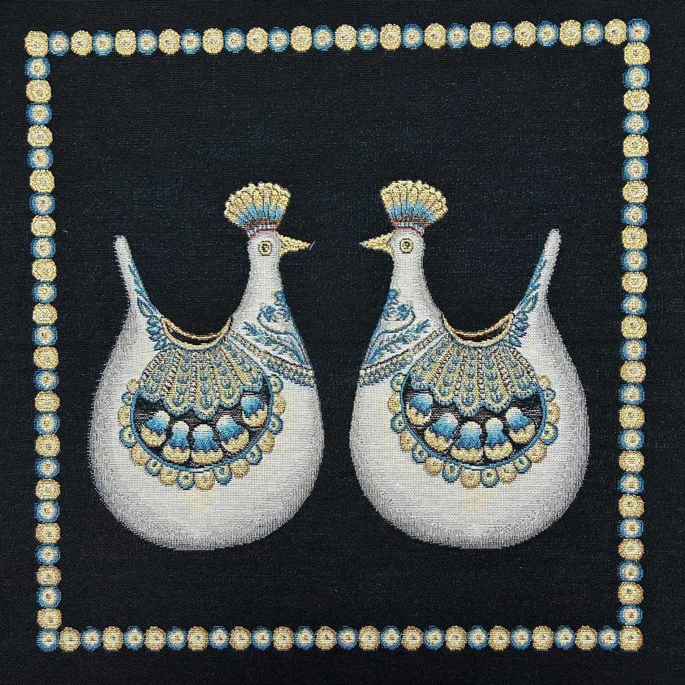 Pannello Gobelin Pavoncelle Sarde Lurex Coppia 45x45 Cm
